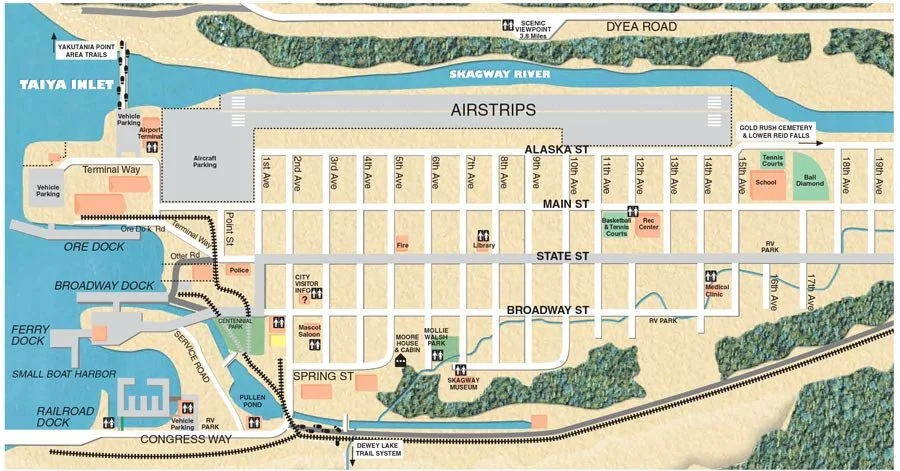Step off your cruise ship and get straight to exploring! This map highlights the quickest routes from the docks, including Railroad, Broadway, and Ore. Whether you’re heading into town or on to stunning adventures, it’s all here to guide your journey!